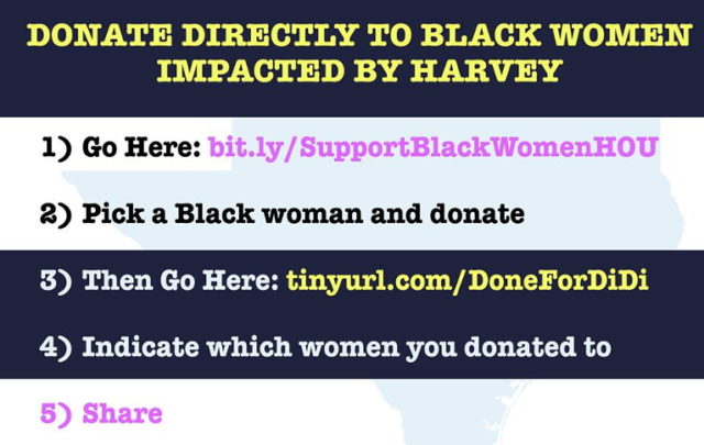 As more Americans have taken to the sharing economy to bypass conventional resource consumption, it seems charitable donations may be next on the list. New donation alternatives, such as Safety Pin Box, have proven that time-tested charity models are becoming outdated. The impact of Harvey will undoubtedly be felt for many years to come, but the quick thinking of Black women activists has already helped to ease the burden for thousands of households—and counting.