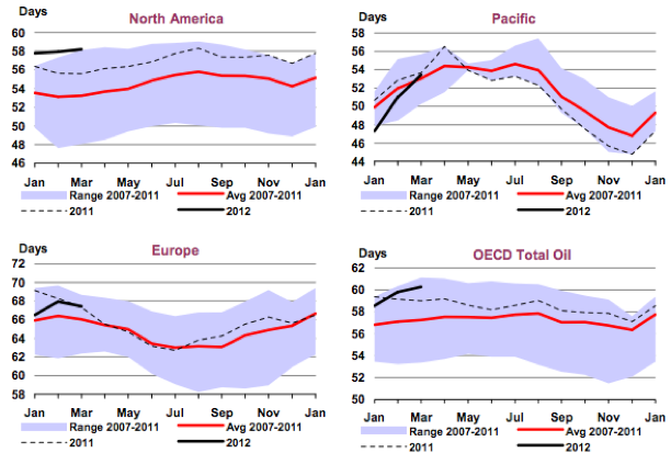 That leads me to question the idea that global oil demand is growing in 2012. Roughly speaking my reasoning for thinking that it would be is: