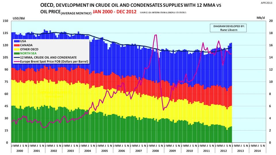 For 2013 it is expected that (C+C) production from the North Sea will continue to decline at an annual rate of 10%. Thus total OECD (C+C) production for 2013 may experience less growth than in 2012.