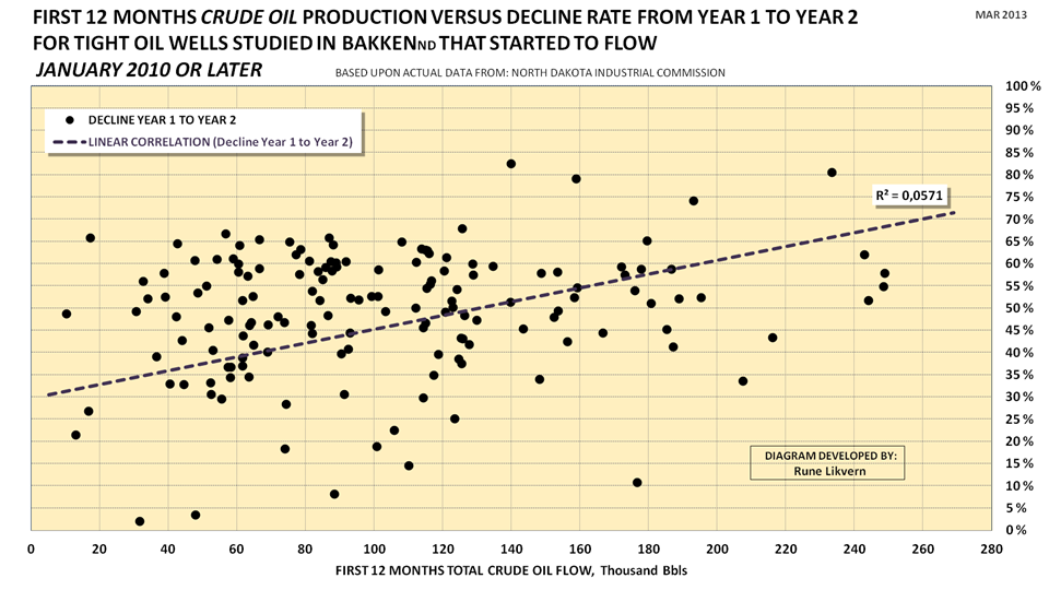 Presently there are lively discussions about future decline for tight oil wells that span from moderate declines (beyond year 3) to those who expect tight oil wells in general to become stripper wells 6 to 8 years after they began to produce.