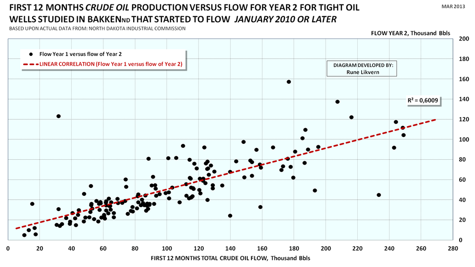This post is an update and extension to my earlier post “Is Shale Oil Production from Bakken Headed for a Run with “The Red Queen”?” which was reposted here.