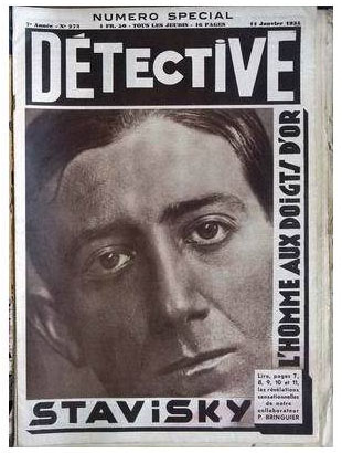 Another less well-known example is the Stavisky affair in 1934. Alexandre Satvisky was a French con-artist who had managed to put himself at the head of the municipal pawnshop of Bayonne. He used his position to sell worthless bonds, with fake emeralds as a surety. He used his political connections to avoid trial and continued his scams until December, when, faced with exposure, he fled. The police finally found him, mortally wounded, in January in Chamonix. He apparently had committed suicide, albeit in a bizarre way since the bullet had traveled an inconvenient three meters before hitting his head.