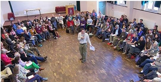 - The domination of big businesses over small businesses. Over the last fifty years or so there’s been an enormous transformation in how our economy works. A vast number of small businesses have been displaced by a small number of very large businesses. In the UK, 97% of all fresh fruits and vegetables are sold through 8,000 supermarkets. Many studies have shown that the small local businesses which make up the remaining 3% return much more of their income to their communities than the big box stores and corporate chains. However, most government economic development efforts concentrate on stimulating big businesses, with support for small businesses a much lower priority. Supporting local businesses to make local economies more resilient was not only a central theme of Hopkin’s presentation but also a goal of Transition initiatives.