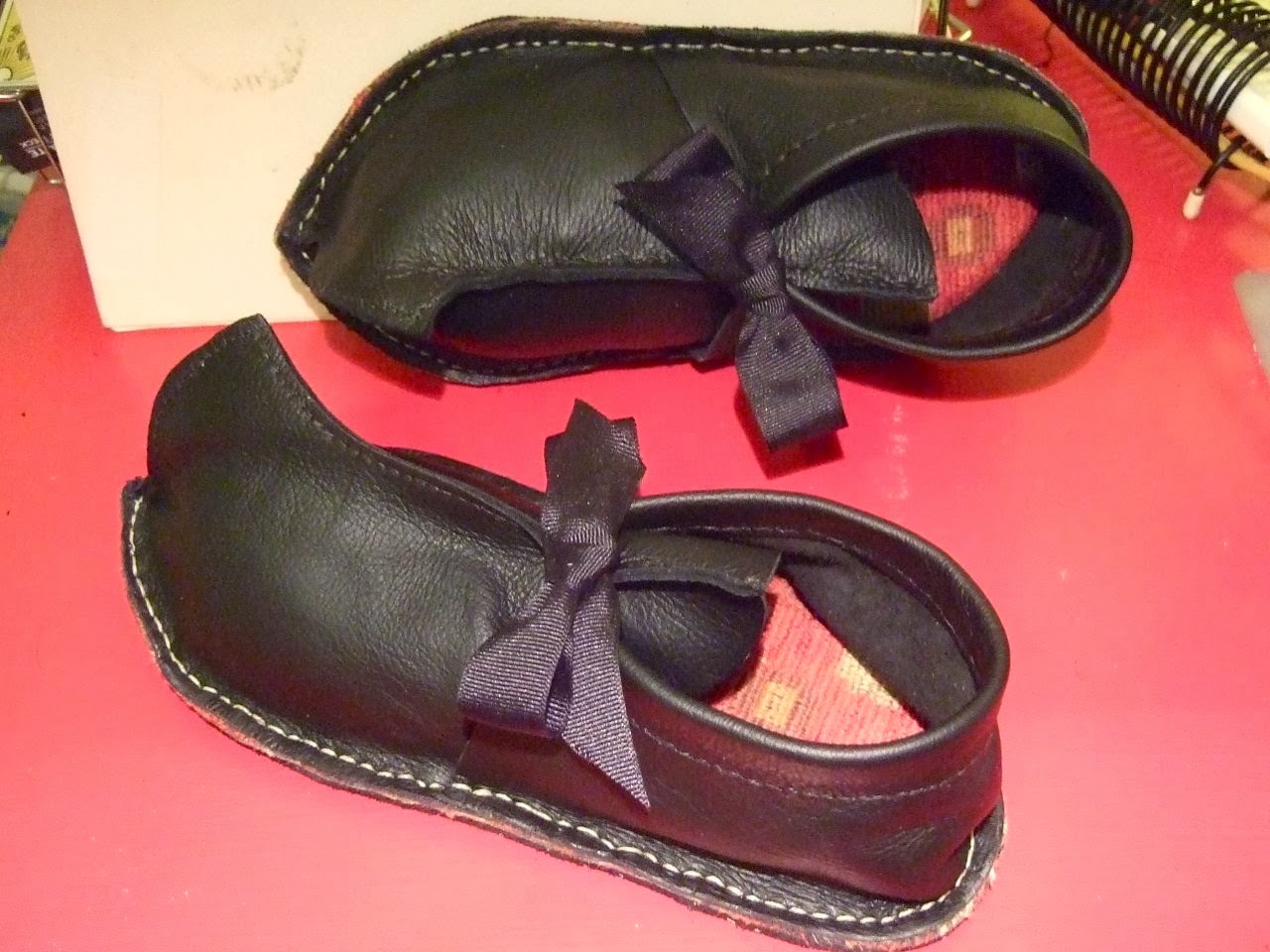 I had the Anarchist try them on. The problematic right foot was a bit loose in the toe. She got her canes out and took a test drive walking fast into her room and back. The pointed soles on one foot would catch a little as she picked up her feet so I took them home and cut and sewed the toes into a rounded shape. Now they fit better and were easier to walk in. She also commented that they were very comfortable and the soles offered plenty of arch support. That’s funny I thought, I didn’t build any arch support into the footbed. But the thickness of the insoles afforded enough cushion to feel like it and protected her protruding bones from the hard floor. She was pleased with the that they looked dressy too.
