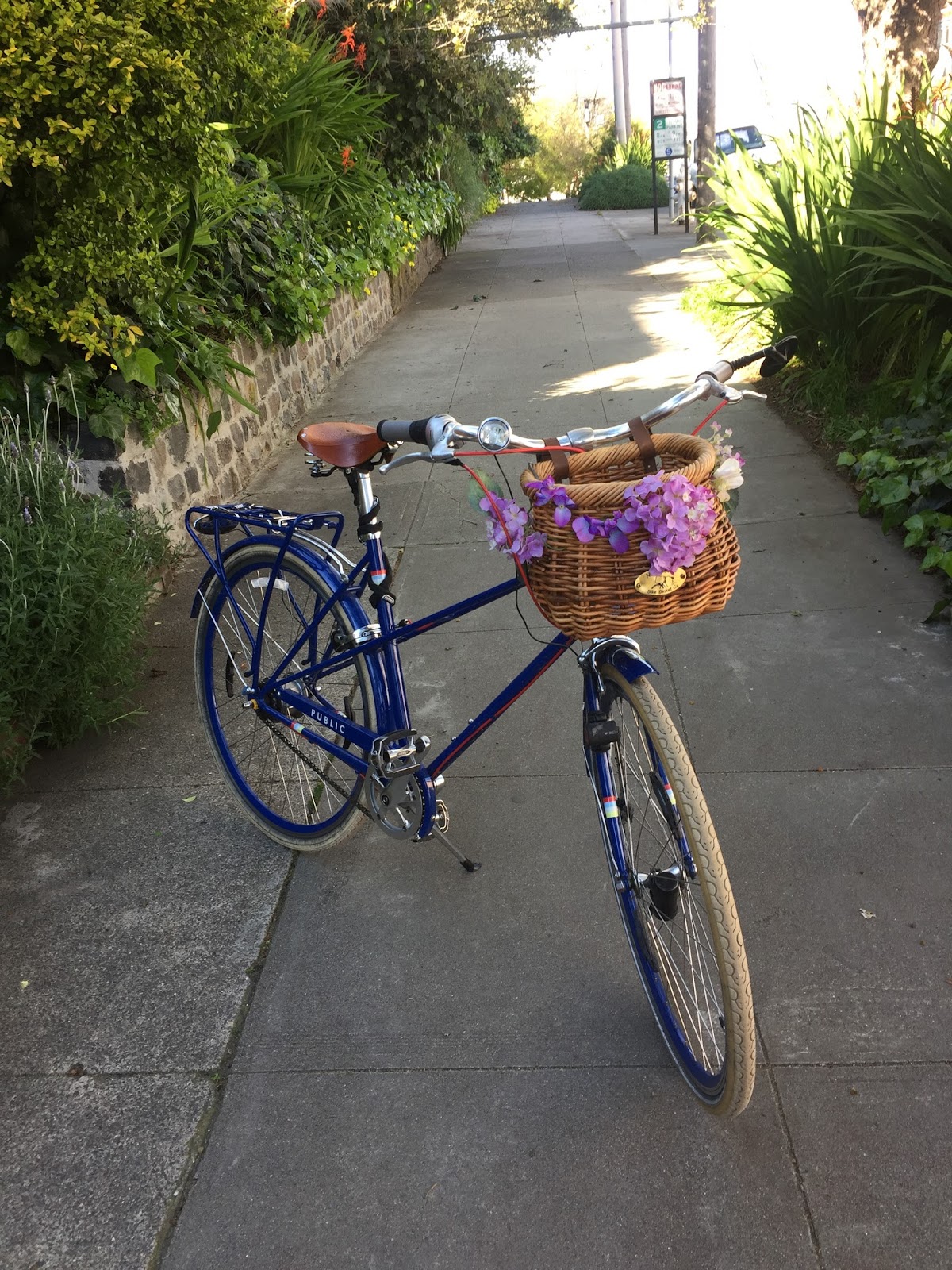 4.) Become a roving ambassador for bicycling. First off, if you’re a serious bicyclist with an awesome road bike you’ve spent major bucks on that is fantastic for hundred mile rides, good for you. But you also need a town bike, one suitable for leisurely, conspicuous, happy bicycling. For this assignment, being duded up in Lycra hunched over your handlebars while barreling along at 30 mph just won’t do. I recommend an upright bike because it shows your face, which, of course, will be beaming due to just how much fun it is to casually bike around town. People like to look at faces, so you’ll attract more attention, which is the point. Make your bike festive! I have a wicker basket decorated with silk flowers. I get lots of compliments; however, I didn’t put on the basket for compliments but rather to make bicycling look as appealing as possible. Guys might not be wild about flowers, but a tweed-style approach to bike riding is always eye-catching. Women, don’t be afraid to wear fashionable clothes while cycling. Looking stylish while pedaling very much raises the status of biking, and it’s easier to ride a bike in heels than to walk in them. (My husband and I ride our bikes to the ballet and the symphony.) Cargo bikes and box bikes can be great fun to decorate (involve the family!), and every single bicycle can benefit from festive lights at night. (I love the Monkey Lights on both my bikes but there are many sparkly, twinkly options.) Festive lights are not only safer, they attract attention in a positive way. On a bike it’s easy to strike up conversations with other bicyclists and pedestrians at intersections. Be cordial, be genial. Give out compliments; help the people biking around you feel great about what they’re doing. If you have a kid-toting cargo bike, be sure to regularly park it in a conspicuous place in front of your kids’ school and chat up anyone who asks about it.
