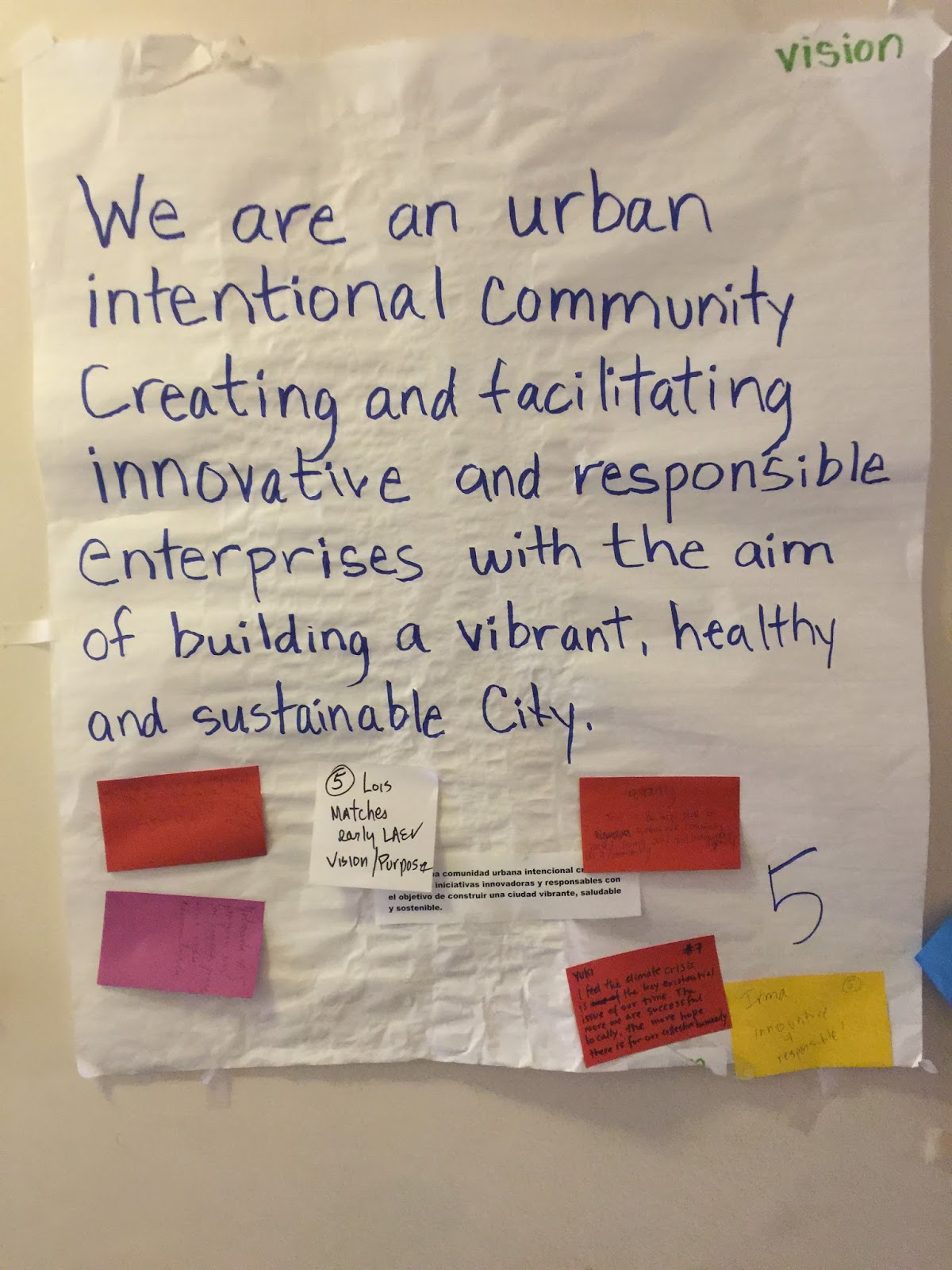 Next year the ecovillage plans to eliminate sidewalks and parking lanes on north side of White House Place and install an urban organic working farm/food forest. In the future they would like to acquire 5 four-plexed apartment houses on White House Place to ensure permanent affordability for 80 to 120% of poverty-level income if existing/future qualifying residents will commit to going car-free within a specified time, and providing convenient car share options. They would power these new homes by installing neighborhood solar PV over the school parking lot. Beyond 2030, when the parking lot is no longer needed, they would create an urban farm.