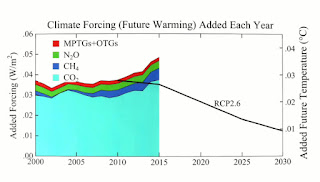 - What we cannot yet see is the implied effect. The one that locked in when we crossed beyond 300, then 350, then 400 ppm CO2 in the atmosphere. Still to come, although not yet unavoidable, are 3 to 7 degrees of warming, dustbowls in the centers of continents and untold meters of sea level rise.
