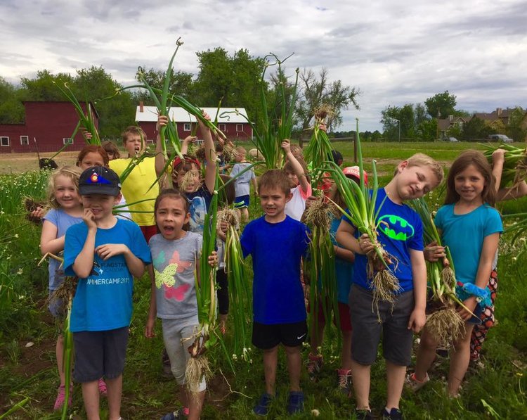 Kids at a summer camp at Ollin Farms show off their harvest (Source: Ollin Farms Facebook page)