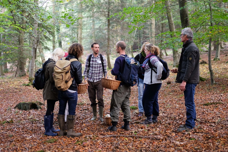 Martin carries a book with him as we walk and regularly pulls it out, highlighting the need to refer to books and guides, even when you’re a practiced forager. “Even if it’s a mushroom you know well, take a few moments to check your assumptions and identification,” he points out. Time appears to be the key factor – the more time you spend foraging, the better you get to know each type of mushroom through the changing seasons and different stages of its growth cycle. I’m excited when I stumble upon and correctly identify the first chanterelle of the walk, and after being passed around the group so the others can take a closer look, it gets added to the growing basket of finds.