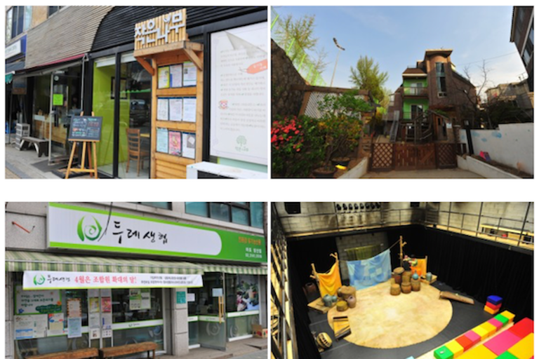 Header image: Top left: Sungmisan cafe, top right: childcare cooperative. Bottom left: consumer cooperative, bottom right: theater. Photos courtesy of icoop.
