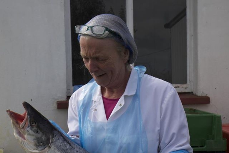 It is the degradation of the wild salmon that has so upset Sally Barnes: ‘I couldn’t give that passion and awe to a creature that I feel nothing towards. I wouldn’t have the heart to turn something fabulous into a commodity’. For Sally, it is the undeserved humiliation of a magnificent animal and friend. A fisherwoman and fisherman’s wife who began smoking fish to provide an income to support her young family, she attempted different recipes through trial and error when the fish were so abundant she would be eating wild salmon most nights of the week, eventually developing a delicious product that she could sell through the winter when the salmon season was over. There were three other smokeries in Ireland who processed wild fish, and now all of them have moved on to farmed fish. There are so many sanctions placed on wild salmon that it has become extremely difficult to get hold of, and in totally non viable quantities for a business. But Sally has stuck to her guns and will not touch farmed fish, as it is not the same animal.