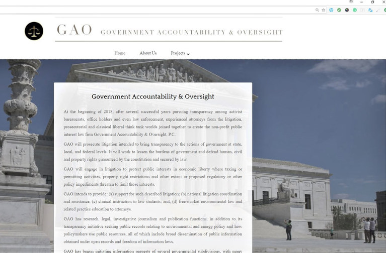 The use of the acronym GAO may of course just be a coincidence. Although the appearance of their website, e.g., the use of the Supreme Court building as its backdrop, could suggest a more deliberate effort to appear an appendage of the federal government. (see Figure 1)