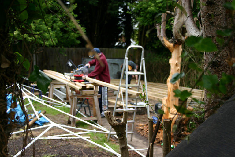 There were no problems – only opportunities for creative solutions! Our first activity was to clear the (very overgrown) garden, demolish a large shed and build a timber framed cabin.