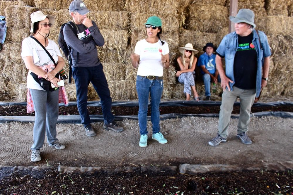 Azucena explains the sophisticated composting system at the Via Organica Ranch as Via Orgánica cofounder Ronnie Cummins translates for Ecosystem Restoration Camp volunteers from Germany, Colombia, Mexico, Canada and the United States. (Tracy L. Barnett photo)