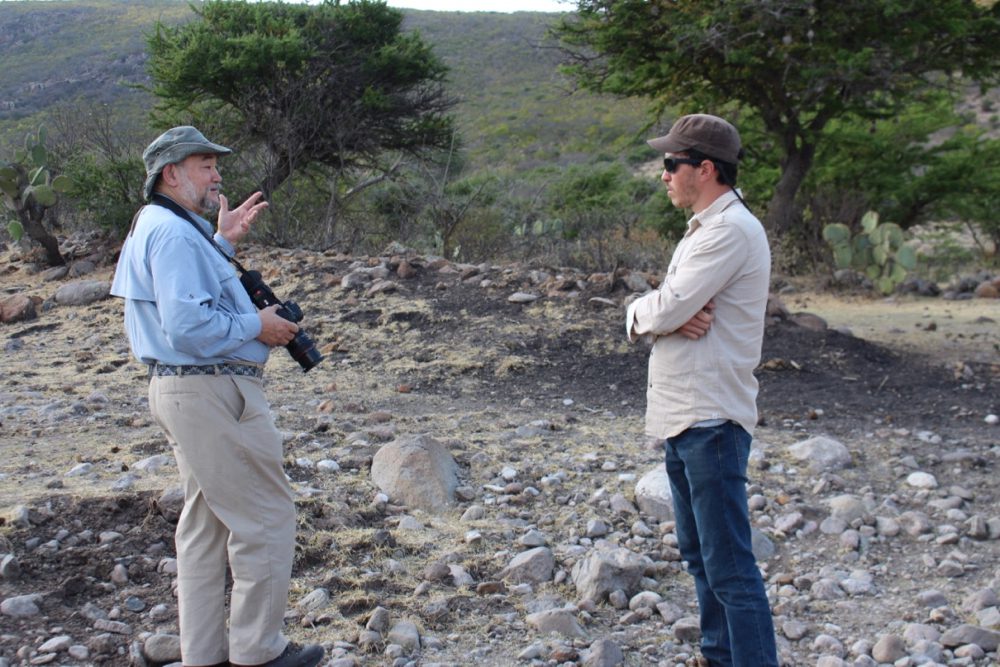 John D. Liu, left, discusses landscape restoration with Gerardo Ruiz Smith during the first Ecosystem Restoration Camp at Vía Orgánica. (Tracy L. Barnett)