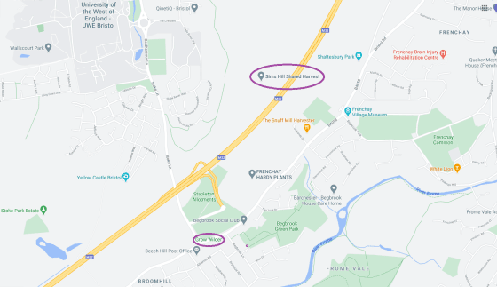 Location of our fields in Stapleton/Frenchay