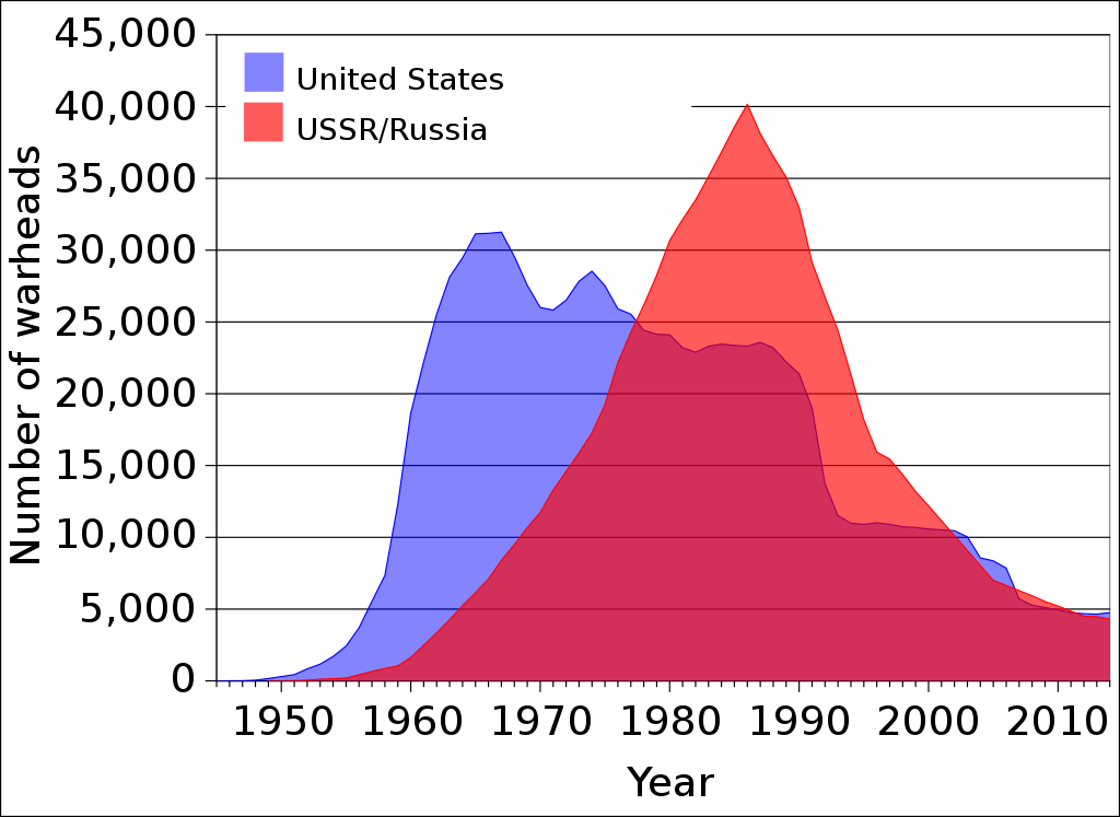 The problem must have been clear already in the 1950s just by looking at the growth trends of the number of warheads. It was clear that the industry was saturating its market. The only solution to stimulate the demand was to start an actual nuclear war but, fortunately, not everyone agreed on that idea.