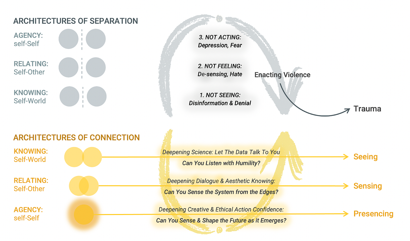 So how do we transform social fields of destruction and absencing? By replacing cognitive and social architectures of separation with architectures of connection across all sectors of society.