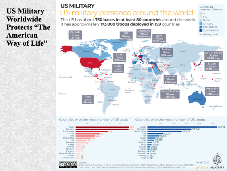 This map shows the hundreds of US military bases and the location of tens of thousands of troops stationed all over the world.