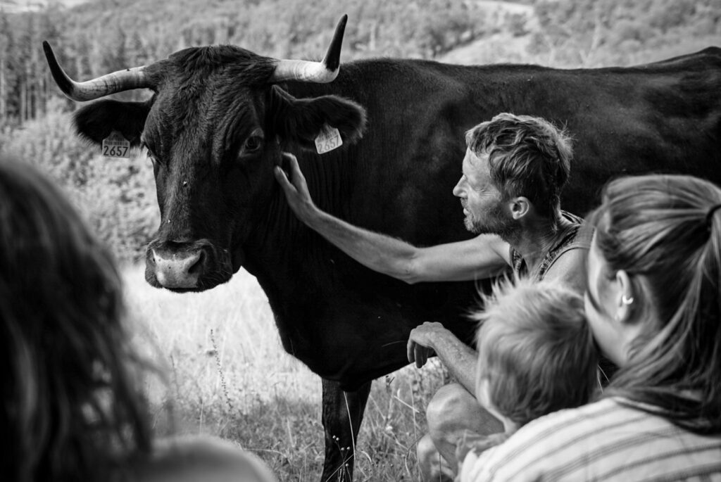 The walks therefore were made in silence, a chance to be together with the landscape, each other and whatever arose in a way that wasn’t dominated by talk. This temporary suspension of chit-chat was of course also inspired by the cows. In all the countless hours that I’d spent with them, I’d realised that their need to vocalise things was absolutely minimal. Hunger, giving birth or excitement at moving to fresh grazing might lead to their calls echoing around the valleys, but other than that, their communication was non-verbal and they passed their days in silence. It seemed natural then that the retreats would end up reflecting this, becoming more of an extension of what was already present on the farm rather than something new imposed on it.