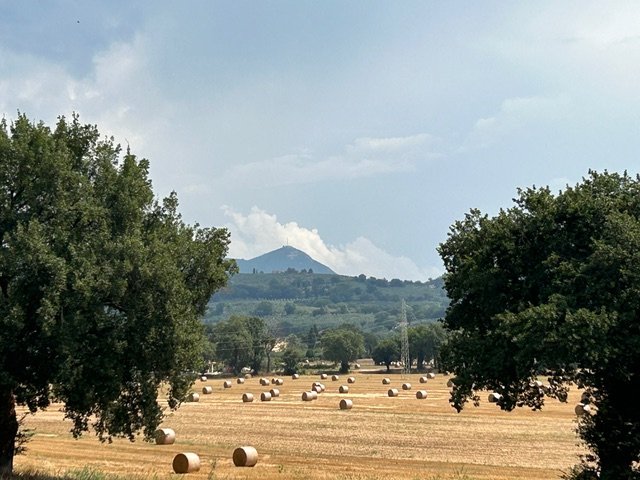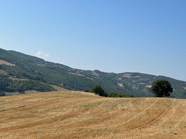 It is one thing to read about food shortages, drought, famine in the newspapers. It is another thing to be on the ground in this heat, on the parched earth working in silence where just a few summers ago there was a cacophony of wild bird conversations. The local farmers here have no crops for the community. In Umbria, in my valley, we are all farmers on small family farms. Umbria is the bread basket of Italy and we primarily grow grains: wheat, hay, farro. The fields are not irrigated; the seeds are sown after the fall rains, in mid-October, and grow into late spring. They need to be cut dry, in mid-June, the beginning of our hot and dry summer. Then the land is left fallow until the rain returns. Hay, the major crop around here, is for our large animals. Though I also grow hay, I am an exception, the only farm in my valley registered to sell eggs. Our cash crops do not/cannot feed the community.