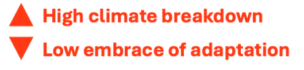 The following three scenarios are based on (1) the extent of climate breakdown and (2) the insurance sector’s embrace of transformative adaptation: in which they work creatively with governments and other actors to establish more resilient building and zoning standards and more generally to undertake bold, strategy-led efforts to adapt to climate impacts (N.B. With the world already moving past 1.5°C, there is no longer a low climate breakdown scenario, only medium or high).