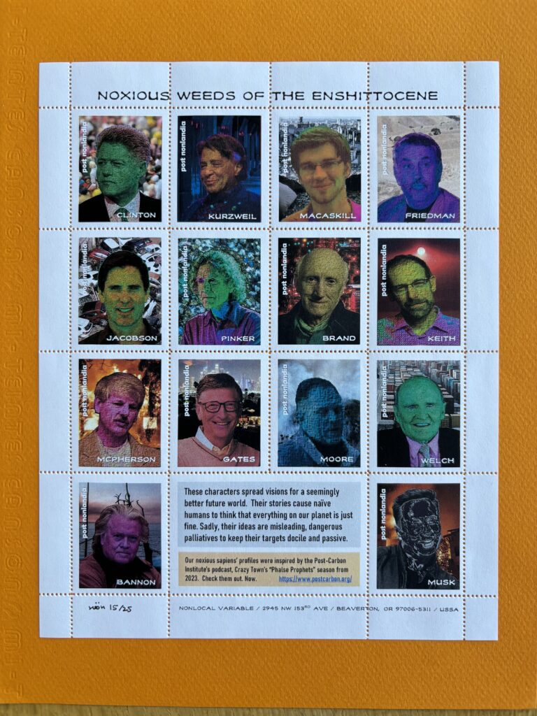 In this episode we travel in time to the year 2125, to visit the Crazy Town museum, which showcases today’s world of wanton consumption and profligate waste. How will humans in 2125 – if there are any of us left – judge the things everyone sees as normal today? Jason, Rob, and Asher take turns serving as expert curators of this future museum, nominating items that best encapsulate how foolish and environmentally ruinous our priorities are. At the end we call on you, dear listener, to share what you would include in the museum.