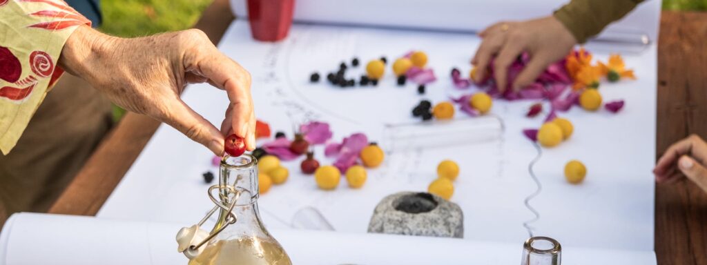 (Microbial Poetics workshop, with foraged fruit kefir