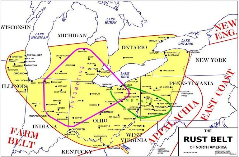 The Rust Belt. An early precursor to the economic downslope.