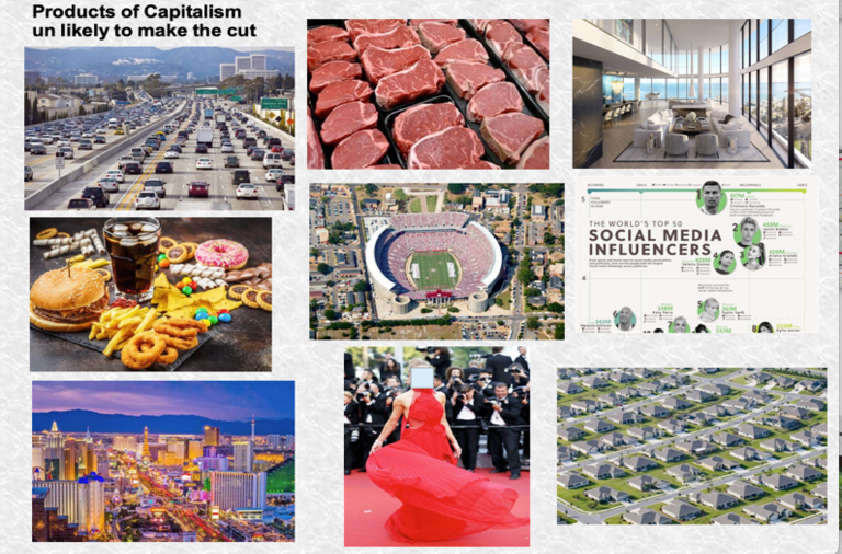 Several well known products and conditions of the consumer culture that will be far less a part of a sustainable society, culture and economic system.