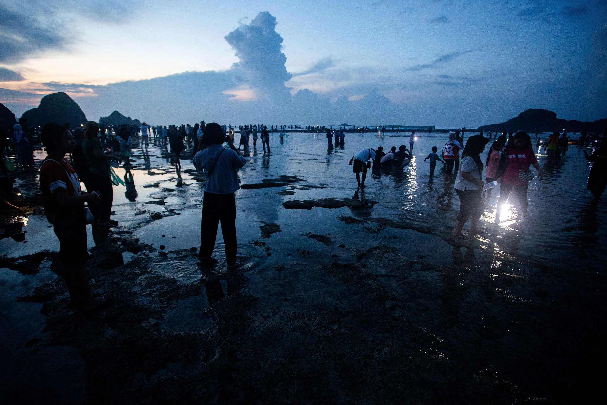 The stakes are high; the guides’ predictions are announced over the radio, drawing thousands of people from up and down the coast on buses, motorcycles, and bikes to Loré for a worm-calling ritual. A designated person lights a torch and scatters burning embers over the reef to attract the animals to the light, then others chant to the worms. Finally, people wade into the water to scoop the animals into specially made baskets. The spiritual guides haven’t told Mondragón what clues they use to anticipate the worms’ arrival, but they’re usually right. “The locals knew exactly when it was going to happen—I mean, almost to the minute,” says Schulze, who attended the Loré festivities in 2018 with Mondragón.